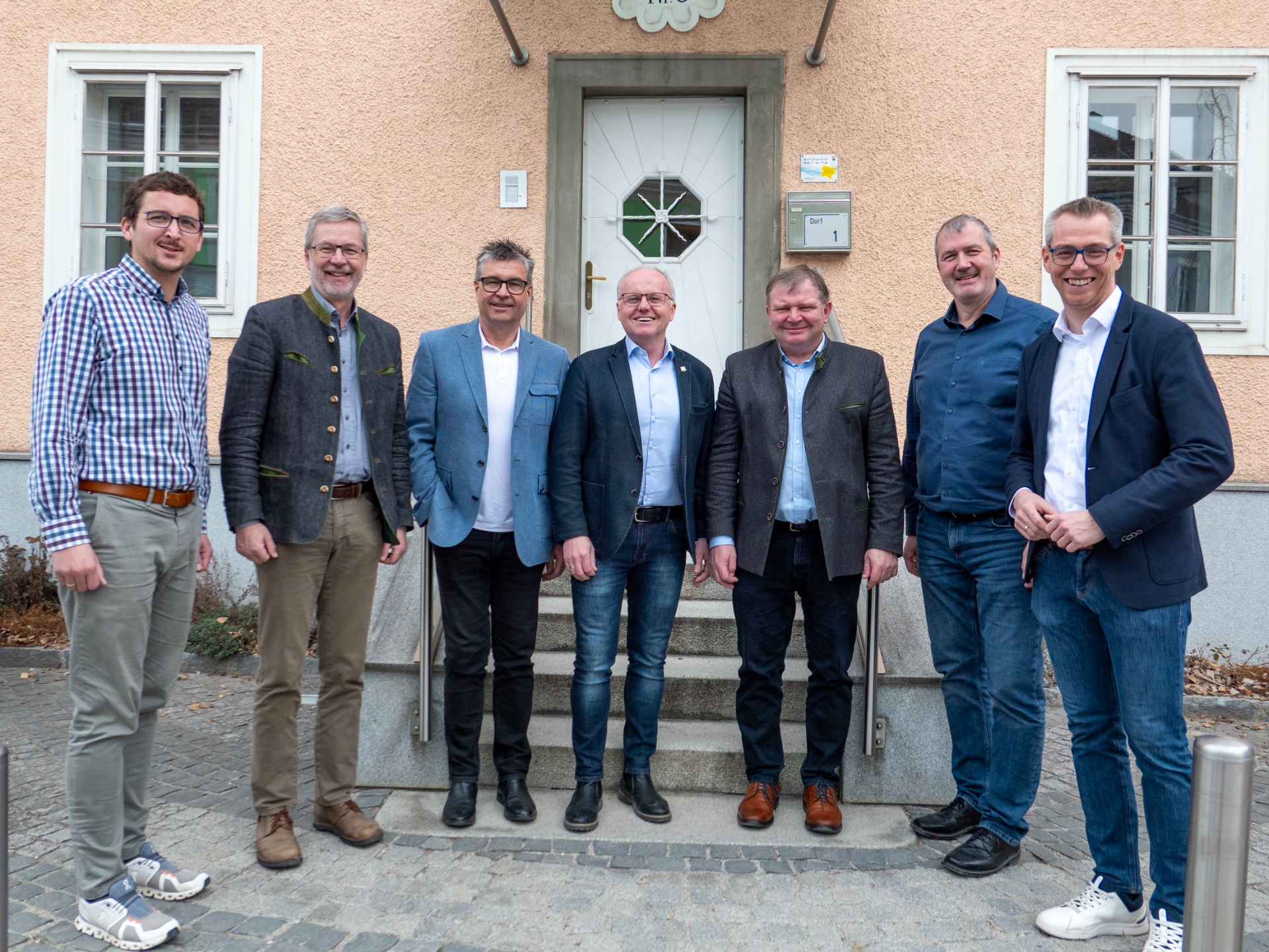 (v.l.n.r.): Bgm. Thomas Hirsch (Weistrach), Bgm. Friedrich Hinterleitner (Biberbach), Bgm. Josef Forster (Ertl), Bgm. Johann Spreitzer (Seitenstetten), Bgm. Josef Unterberger (Wolfsbach), Bgm. Martin Schlöglhofer (Aschbach-Markt), Bgm. Johannes Heuras (St. Peter in der Au, Kleinregionsobmann); Fotocredit: Barbara Pirringer, P&R